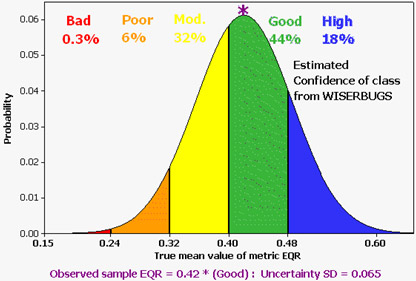 The new WISER Bioassessment Uncertainty Guidance Software (WISERBUGS) provides a flexible general means of using sampling uncertainty simulations to assess confidence in estimates of Ecological Quality Ratios (EQRs) and derived WFD ecological status class for water bodies. Assessments may be based on single metrics or a combination of metrics including multi-metric indices (MMIs) and multi-metric rules and involving metrics from one or several Biological Quality Elements (BQEs) for any type of water body with appropriate data.